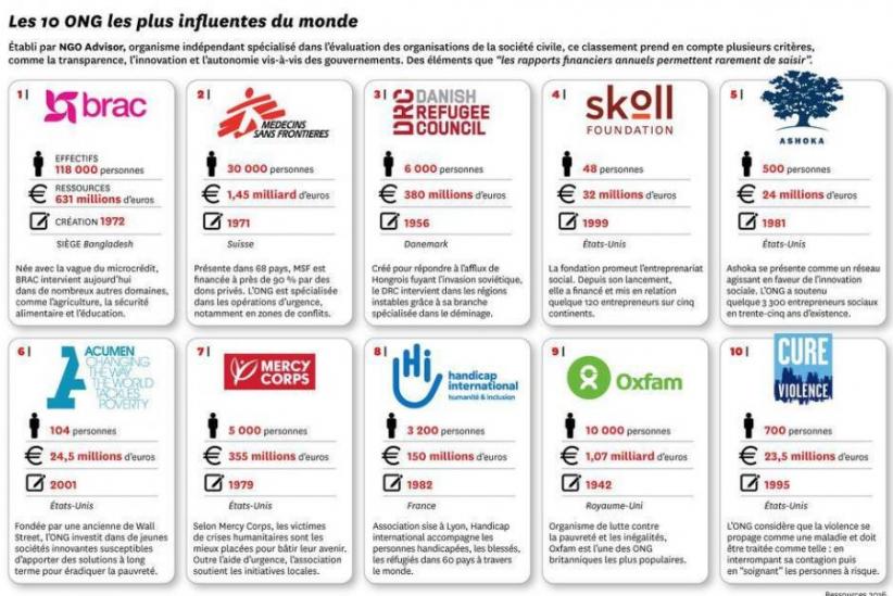 Dans ce classement, établi par l’organisme indépendant NGO Advisor, peu de grands noms de l’humanitaire. Et pour cause, les critères dépassent la simple puissance financière des ONG.