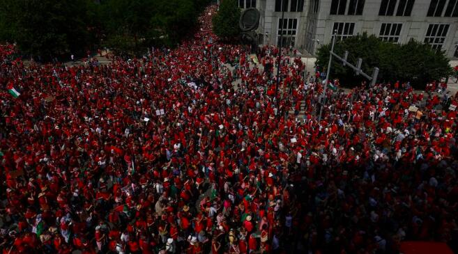 Une ligne rouge symbolique à Bruxelles: entre 75 000 et 110 000 personnes contre un “génocide” à Gaza