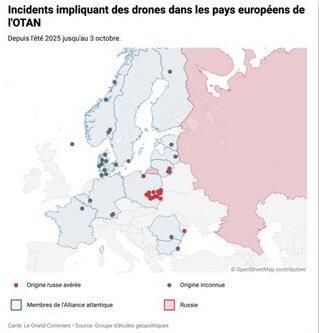 Selon une recension ralise par la revue, au moins 47 incidents impliquant des drones aperus, crass ou abattus dans lespace arien de pays europens membres de lOTAN ont eu lieu depuis cet t. Dans la plupart des cas, lorigine de ces engins na p