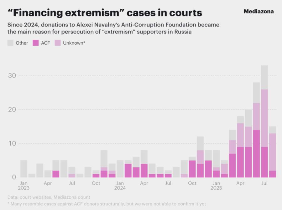 At least 114 criminal cases have been launched in Russia over donations to Alexei Navalnys Anti-Corruption Foundation (ACF) after it was outlawed as an extremist organisation in...