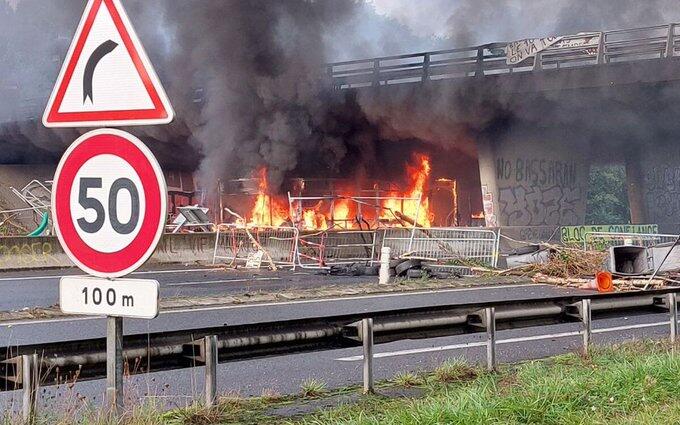 Un bus incendié sur la rocade de Rennes lors du mouvement «Bloquons tout» : le conducteur «choqué», le pont endommagé