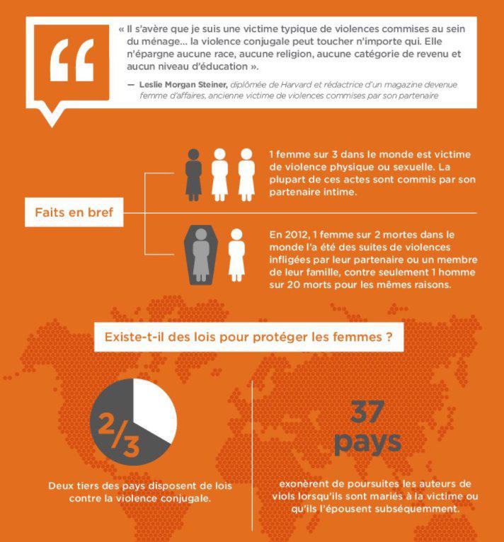 1 femme sur 3 dans le monde est victime de violence physique ou sexuelle. La plupart de ces actes sont commis par son partenaire intime. À la maison ou dans la rue, en temps de guerre ou de paix, la violence perpétrée à l’égard des femmes