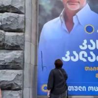 Géorgie. L'opposante Elene Khochtaria écrit «Rêve russe» sur l'affiche de campagne du maire de Tblissi