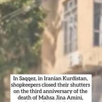 Saqqez, au Kurdistan iranien : les commerçants ont baissé le rideau en hommage au troisième anniversaire de la mort de Mahsa Jina Amini, originaire de la ville