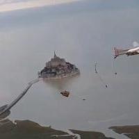 Exercice militaire de saut en parachute au dessus du Mont Saint-Michel