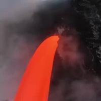 Hawaï : un immense jet de lave en fusion jaillit d'une falaise créant une explosion lorsqu'il se déverse dans l'océan Pacifique (phénomène observé en 2017)