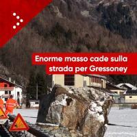 Italie. Un énorme rocher se détache et tombe sur la route de Gressoney. Miraculeusement, aucune voiture n'a été touchée